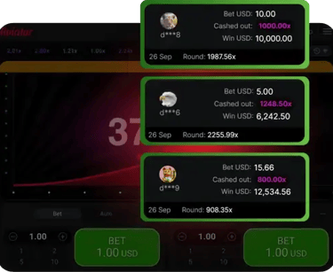 Withdrawal of Winnings at the Right Moment When the round begins, the active Bet buttons change to Cash Out buttons. The goal is to wait for a sufficient multiplier that satisfies you. Don't forget to withdraw your winnings in time while the flight is still ongoing.